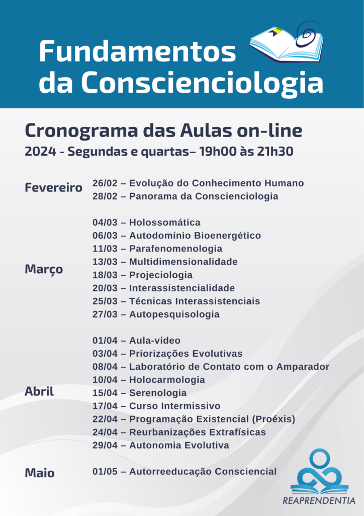 Obs.: o curso Fundamentos da Conscienciologia on-line, embora tenha aproximadamente 80% de atividades similares às realizadas no curso presencial, pela falta dos laboratórios práticos bioenergéticos e parapsíquicos presenciais, não satisfaz o pré-requisito para ECP1, Autorreeducação Consciencial e cursos de campo como ECP2 ou CEP.