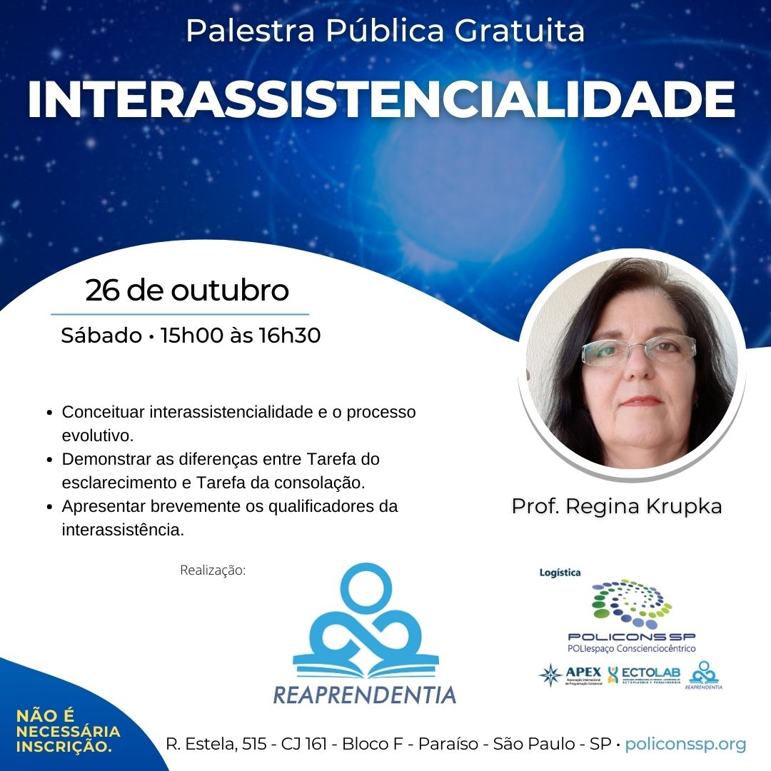 Os seguintes tópicos serão abordados na palestra sobre Interassistencialidade ministrada pela professora Regina Krupka: