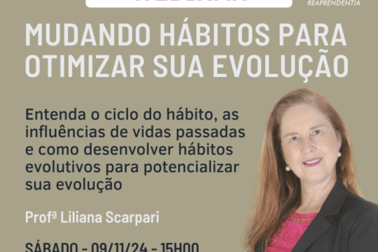 Webinar "Mudando hábitos para otimizar sua evolução": A professora Liliana Scarpari aborda o ciclo do hábito, as influências de vidas passadas e como...